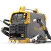 Details: Mig200gdsv 3-in-1 multi-process dual-voltage synergic welder is designed for for hardware, decoration, car modification, equipment and factory maintenance. The igbt inverter technology provides high power in a light, compact unit ( 30 lbs). This units are capable of performing mig, lift tig and stick welding equally well at maximum 200 amp output. There's not much this unit can't do. With dual digital display easy to read and set amperage and wire speed for repeatable welds every time2t/4t modes, spool gun capability, and advanced dc lift tig features, this multi-process welder truly handles about any chore, including aluminum when used with the spool gun in the mig mode. Package includes: 1. MIG torch: 10 ft. ERGOPLUS15; 2. Tig torch: 13 ft. WP-17; 3. Electrode holder: 5awgx10 ft. Cable35-50 quick connector200a electrode holder; 4. Earth clamp: 5awgx10 ft. Cable35-50 quick connector300a T-shape earth clamp; 5. Gas hose: 55; 6. Power adapter.
