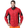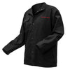 Details: Description Welding jacket with top grain leather sleeves and shoulders increase overall protection, is sewn entirely with Kevlar. It is made od indura 100% cotton, flame resistant guaranteed for the life of the jacket, with a stand-up collar for extra neck protection.